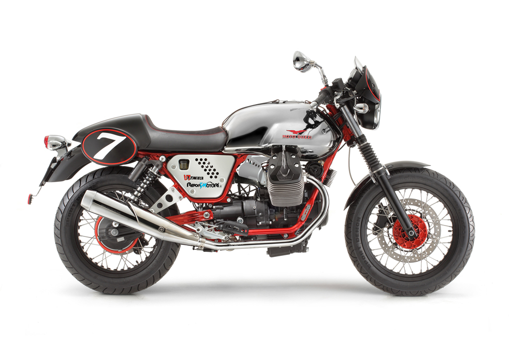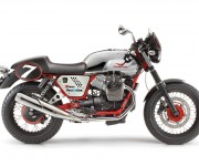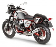 Prodotta in edizione numerata come rivela la targhetta celebrativa posta sulla piastra superiore di sterzo, la V7 Racer colpisce per la raffinatezza esecutiva dei dettagli, come la preziosa cinghia di pelle, un richiamo alle moto d’antan come i fregi metallici del logo Moto Guzzi, in tinta con il telaio. Quest’ultimo, di colore rosso ispirato a quello delle prime mitiche V7 Sport con telaio al CrMo, è il frutto di uno speciale trattamento di verniciatura, esteso anche ai mozzi, ruota e forcellone, che esalta la purezza architettonica del telaio.
