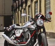 Il progetto della nuova Moto Guzzi V7 parte dall’esame della sua identità: elegante, italiana, bicilindrica, accessibile e con una storia unica. Per preservare i tratti di questa personalità e proiettarla verso il futuro l’unica strada percorribile era innovarla totalmente in un perimetro di tradizione delimitato dal suo schema tecnico e dallo stile del suo design. Per questo possiamo dire che la V7 è una moto completamente nuova, più potente, più veloce, più parca di consumi, più ecologica, meglio rifinita e più comoda della precedente ma pur sempre bicilindrica trasversale a V di 90 gradi con trasmissione a cardano e telaio a doppia culla. Ovvero gli elementi distintivi di una tradizione che ha le sue radici in un’idea nata nel 1967: la Moto Guzzi V7 700cc. La Racer è ora l’unica versione sportiva della V7 ed è il modello della gamma che beneficia maggiormente delle due più rilevanti novità: il nuovo motore ad alimentazione singola, che restituisce prestazioni più sportive e il serbatoio metallico, ulteriormente esaltato dal trattamento di cromatura specifico di questo pregiata versione.
