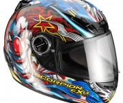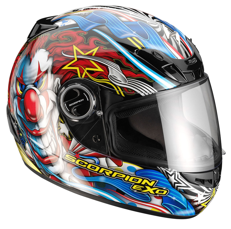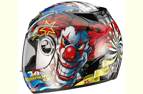 E’ un Entry Level dalle straordinarie caratteristiche quanto “sfacciato” nelle grafica. Il nuovissimo Exo 400 ShowTime si presenta con tutte le caratteristiche in termini di sicurezza tipiche dei caschi Scorpion ma con un occhio attento anche al prezzo. Il nuovo Exo 400 Showtime ha una grafica che pone al centro un clown capace di ipnotizzare e colori vivacissimi per un carnevale di sensazioni….. Una nuova, irriverente e suggestiva veste per il casco integrale “entry level” della Scorpion capace sicuramente di incontrare i gusti e tutte le esigenze in termini di sicurezza del pubblico più giovane. Per Scorpion-Exo, infatti, realizzare caschi relativamente “economici” non ha mai significato privare questi prodotti di precise caratteristiche quali: qualità senza compromessi, livello di protezione altissimo, confort assoluto ma con l’Exo 400 tutto ciò assume un significato ancora più forte e preciso! La calotta, realizzata in resine termoplastiche iniettate con rivestimento anti-UV, è disponibile in due diverse misure. Il disegno (della calotta) è classico, con curve fluide e regolari per una migliore penetrazione aerodinamica. Le prese d’aria, presenti sulla parte anteriore, sono adattabili e regolabili mentre gli estrattori sulla parte posteriore sono dotati di spoiler “aero-tuned” per ridurre il rischio di sollevamento alle alte velocità. Per un assorbimento ottimale in caso di urto, il rivestimento interno della calotta è in EPS a doppia densità, mentre l’EPS è presente, per una protezione supplementare, anche sulla mentoniera, cosa rara in generale fra i caschi competitors e non solo fra gli “entry level”.