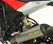 La nuova naked di Varese si è meritata le attenzione di Arrow tanto che gli scarichi per la Nuda 900 e per la sorella “cattiva” 900R sono già in produzione. Il silenziatore, della linea Works, è in titanio con fondello posteriore in carbonio. Ovviamente omologato per uso stradale, con dB-killer estraibile per divertirsi in pista, può essere montato sui collettori originali (ed in questo caso viene fornita nel kit di montaggio la protezione per la valvola allo scarico) oppure sui collettori Arrow. La potenza con lo slip on arriva a circa 104cv rispetto ai 102.5cv dell’originale, con un consistente incremento della coppia ai bassi regimi. Il kit completo raggiunge i 106cv, con un incremento di coppia sensibile e davvero entusiasmante a tutti i regimi.