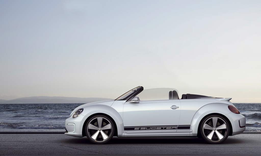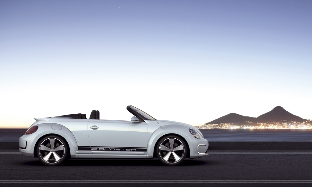Era il gennaio 2005. Il palcoscenico era quello di Detroit. La Volkswagen presentò una New Beetle in versione speedster con ragtop piatto (tetto ripiegabile): la Ragster, un’anticipazione del design della Beetle di domani (cioè quella attuale). Più larga, più bassa e più sportiva. Nel 2005, riguardo alla fattibilità della concept car, si diceva che tutto è ipotizzabile: nel 2012, invece, si dice che tutto è possibile. L’idea alla base della Ragster, appunto una vettura più larga, più sportiva e con linea del tetto più piatta, si è infatti concretizzata nell’ottobre 2011 con l’attuale Beetle, a eccezione del ragtop. Resta ancora un punto interrogativo sul nome: E-Bugster. La scelta si spiega facilmente: si tratta di una combinazione fra la “E” che identifica le auto elettriche, il soprannome statunitense della Beetle (“Bug”) e il termine “speedster”, che indica le due posti cabriolet.