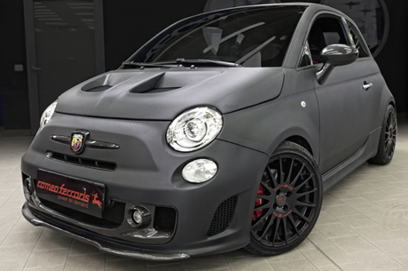 Per tutti coloro che amano il carbonio, la Romeo Ferraris, oltre alla linea di prodotti realizzati in vero carbonio, propone quattro differenti colori (nero, rosso, grigio, bianco) per le trame carbon-look delle speciali pellicole utilizzate per rivestire (car wrapping) e proteggere la carrozzeria, tutte disponibili con finitura lucida e opaca. La più particolare è sicuramente la trama carbon-look rossa, che rende qualsiasi 500 Abarth particolare e aggressiva. E se il carbonio non è tra i nostri favoriti, non dobbiamo dimenticare che possiamo scegliere tra un vasto catalogo di trame dalle più classiche come quelle opache fino a quelle più particolari come il legno e il titanio. L’applicazione della pellicola viene effettuata all’interno della Romeo Ferraris da tecnici specializzati solo su appuntamento ed è possibile scegliere di rivestire completamente l’auto o solo alcune parti, come specchietti o tetto.