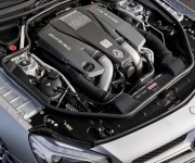 Il potente otto cilindri (sigla: M 157) utilizza innovativi componenti high-tech che consentono elevato rendimento e consumi esemplari: oltre all’iniezione diretta di benzina a getto guidato il propulsore adotta un basamento interamente in alluminio con sovralimentazione biturbo, quattro valvole per cilindro con regolazione degli alberi a camme, raffreddamento ad aria/acqua dell’aria di sovralimentazione, gestione dell’alternatore e funzione ECO start/stop. L’impianto di scarico sportivo AMG, ottimizzato nel peso e dotato di due terminali di scarico doppi cromati, da voce allo sportivo sound del V8AMG.