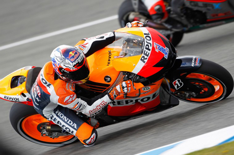 Un ritmo che solo lo spagnolo del team Yamaha Factory Racing sembra capace di seguire. Il finale di gara è almeno emozionante quanto la partenza. Per la vittoria si sfidano Casey Stoner e Jorge Lorenzo, per il podio Dani Pedrosa deve difendersi dagli attacchi di un indomabile Cal Crutchlow. La spuntano rispettivamente l’australiano per il primo gradino del podio e lo spagnolo per l’ultimo. Delusi, fino ad un certo punto, Lorenzo, secondo, e Cal Crutchlow ancora una volta 4º con la Monster Yamaha Tech3 numero 35. Andrea Dovizioso (Monster Yamaha Tech3) , Alvaro Bautista (San Carlo Honda Gresini), Stefan Bradl (LCR Team) , e Nicky Hayden completano le prime otto posizioni del Gran Premio bwin de España. Altra grande prova del tedesco che migliora l’ottavo posto in Qatar e si dimostra all’altezza della categoria.