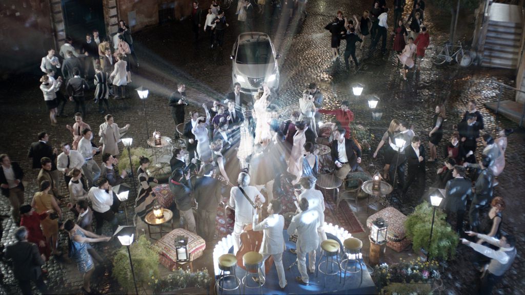 L’arrivo della Ypsilon muta l’atmosfera e con i quattro ragazzi a bordo cambia in pochi attimi l’anima della serata, trasformandola in una festa. La band si anima. Una ragazza solare e sorridente sale su un tavolino del locale e inizia a ballare in un crescendo musicale. Coprotagonista la Lancia Ypsilon che, illuminandone con i suoi fari il vestito di paiettes, trasforma la ragazza in una “mirrorball” che riflette mille luci scintillanti. Tutto prende vita. Lo spot si chiude su una panoramica della piazzetta ora piena di gente in festa grazie a Lancia Ypsilon: un “mood” speciale che richiama alla memoria le memorabili nottate che negli anni 50 e 60 caratterizzavano il dolce e suadente scorrere della vita capitolina.