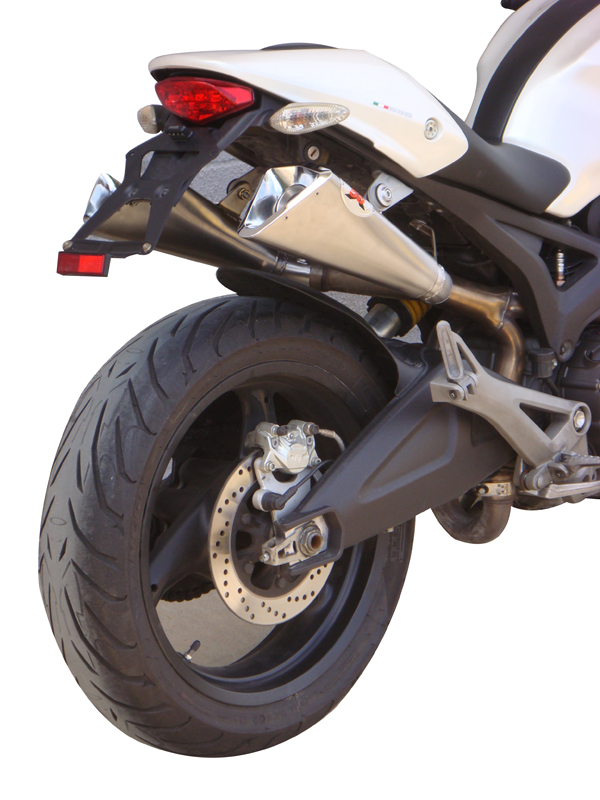E’ in vendita il nuovo silenziatore X55 disponibile ora in versione omologata per la nuova Ducati Monster 696. Il silenziatore X55 è a forma conica con fondello “big flow” in alluminio. Il silenziatore X55 è lungo 330 mm, con un peso di Kg.1,4. I nuovi silenziatori X55 sono tutti costruiti internamente in acciaio inox AISI-304 con finitura satinata ed è dotato di db-killer facilmente estraibili per avere maggiori prestazioni. Tutti i silenziatori sono omologati e forniamo la targhetta sui silenziatori con relativo numero d’omologazione insieme al foglio del Ministero d’omologazione esclusivo per ogni tipo di moto da allegare al libretto. Il look della vs. moto diventerà assolutamente racing replica, potrete avere una moto stradale bella come una Superbike o una MotoGP e con un ottimo aumento della coppia e della potenza massima del Vs. motore. Il suono del motore è più corposo e basso sempre rispettando le norme di legge. La coppia di silenziatori X55 per la Ducati Monster 696 della Ixil è di facile ed immediata installazione, dotati di collettore, flangia, viti ed istruzioni di montaggio, sono disponibili al prezzo di 692,12 iva inclusa.