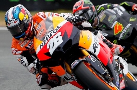 A sorpresa, ma fino ad un certo punto, Dani Pedrosa su Repsol Honda conquista la pole position grazie ad un ottimo ultimo giro nel quale ferma il cronometro a 1’33.638. Per lo spagnolo si tratta della quarta pole su questo tracciato da quando corre in MotoGP. In prima fila con lui ci saranno Casey Stoner, oggi leggermente sottotono, ma comunque molto veloce e Andrea Dovizioso che piazza la sua Monster Yamaha Tech3 in terza posizione.