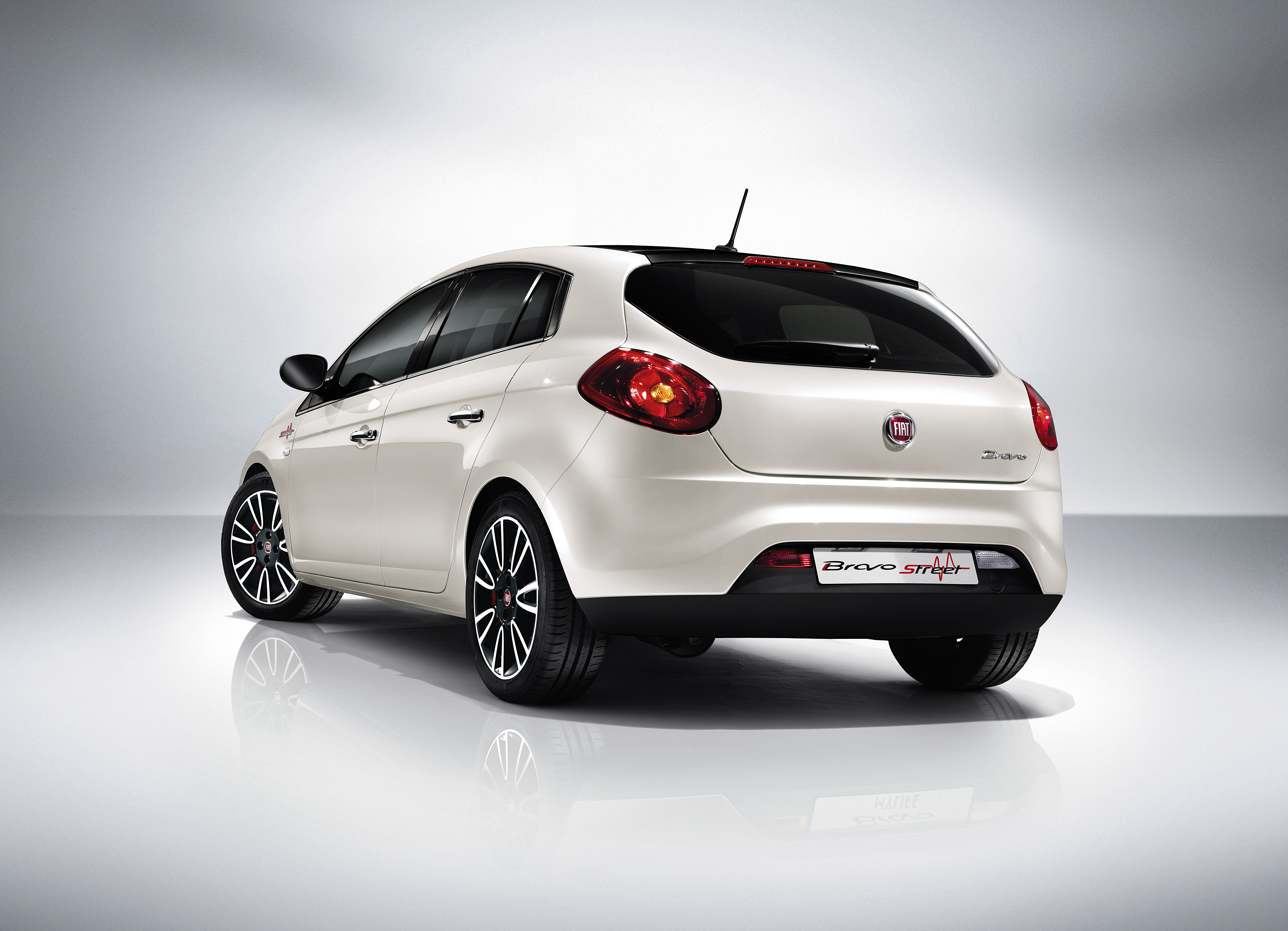 Infine, a partire da giugno, sarà ordinabile Fiat Bravo 2012 Street, la versione top di gamma desitinata ad un cliente giovane, moderno, metropolitano, che in una vettura cerca lo stile, la ricchezza di dotazioni, il divertimento di guida, il tutto ad un prezzo accessibile. Disponibile con le motorizzazioni 1.4 T-Jet benzina da 120 CV e 1.6 MultiJet da 120 CV, propulsori con il giusto equilibrio tra performance e risparmio, la nuova Bravo Street si contraddistingue, all’esterno, per il logo identificativo e per le pinze rosse dei freni che spiccano attraverso i nuovi cerchi in lega da 17”. Quest’ultimi, verniciati nero lucido con un esclusivo trattamento di diamantatura , si sposano perfettamente con i diversi inserti nero lucido già presenti sulla vettura: dalla calandra superiore e inferiore alle calotte degli specchi esterni, dalle cornici dei fendinebbia al montante centrale.