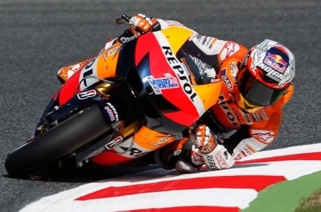 Casey Stoner (Repsol Honda) non si fa attendere e dopo 5 minuti di sessione di qualifica fa segnare già un tempo da pole con 1’41.938. L’australiano sembra in grado di controllare tutta la prova grazie a questo crono, ma sarà costretto nel finale a migliorare il suo registro di quasi 6 decimi (1’41.295) per assicurarsi la seconda pole stagionale dopo quella dell’Estoril.