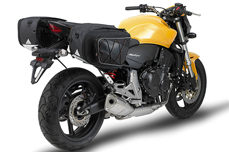 Le borse laterali universali TK760 sono espandibili da 20 a 29 litri ciascuna, dispongono di rinforzi interni in plastica rigida per mantenere la forma e di fondo “fire-retardant” che contrasta l’eventuale vicinanza del terminale di scarico. Il vano principale si apre superiormente tramite zip e patella con velcro. Una comoda tasca sul lato guida risulta a portata di mano senza scendere dalla sella. Il sistema di fissaggio è universale e fa uso di 3 cinghie. In dotazione anche due classici elastici con ganci. Prezzi al pubblico: coppia 115 euro