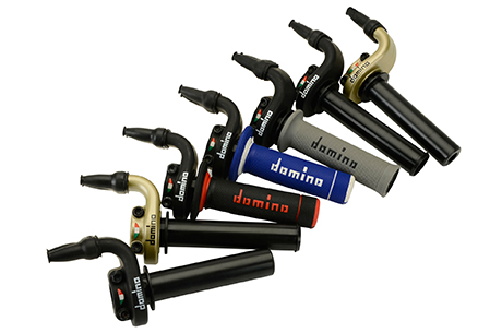 Domino presenta la nuova versione dei comandi gas KRE03 e KRR03 adatti alle più famose moto sportive e racing. Progettati e studiati per una performance ottimale, i nuovi comandi gas KRE03 e KRR03 hanno diverse particolarità che li rendono unici nel loro stile e nel loro design e che demarcano con decisione il “Made In Italy” che solo Domino è in grado di offrire ai propri clienti. I nuovi comandi gas Domino KRE03 e KRR03, disponibili sia in versione oro che nero, si differenziano dai precedenti per due importanti novità. Prima di tutto è stata applicata una bandiera italiana accanto alla manopola, un particolare che mette in risalto l’unicità del “Made In Italy”. Non da meno è la tampografia Domino, aggiunta per mettere in maggior evidenza e risalto un marchio di unica qualità e prestazione.