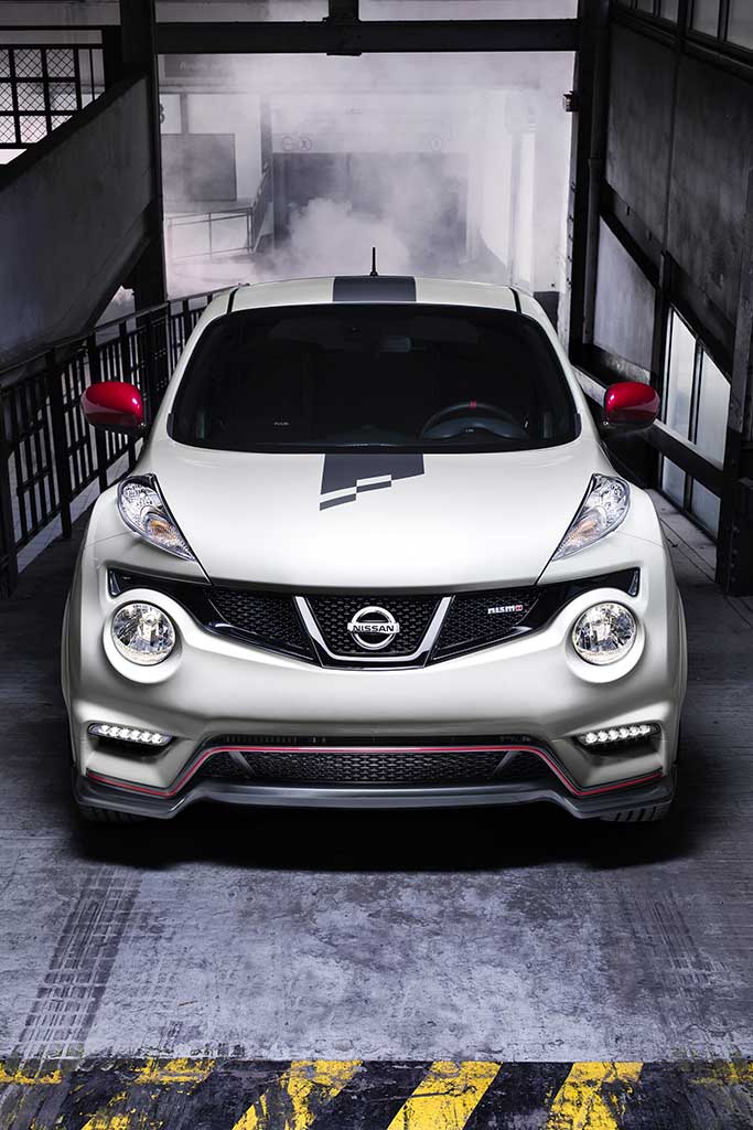 Nissan Juke Nismo unisce al già radicale design di Nissan Juke un mix unico di linee da coupé sportiva e solidità da SUV, modellato sull’esperienza di Nismo nel settore dell’automobilismo sportivo. Gli specialisti della divisione hanno progettato un nuovo kit aerodinamico che conferisce a Juke un profilo ancora più efficiente, dinamico e di grande impatto. Il modello, infatti, presenta paraurti anteriori e posteriori in posizione ribassata, parafanghi più ampi, minigonne sottoporta e una griglia modificata che, insieme allo spoiler di coda, assicura un controllo ottimale del flusso d’aria. Una serie di accorgimenti aerodinamici atti a ridurre la portanza anteriore e posteriore, senza aumentare la resistenza, potenziando le performance di guida dell’auto. Inoltre i nuovi, stilosi cerchi in lega da 18 pollici con pneumatici maggiorati migliorano l’aderenza e rimarcano ulteriormente la presenza di Juke sulla strada.