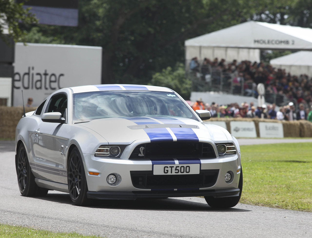 La Ford Mustang più veloce e potente di sempre è stata l‟ospite d‟onore del Festival della Velocità di Goodwood, in Inghilterra. Lanciata di recente sul mercato americano, la supercar ha raggiunto l‟Europa dagli USA per essere guidata sulle famose colline di Goodwood di fronte a un vasto pubblico di appassionati. La Ford Mustang Shelby GT500, che raggiunge e supera i 320 km/h, è dotata di un motore turbo V8 5,8 da 671 cavalli, più di qualsiasi altra auto prodotta in Nord America.
