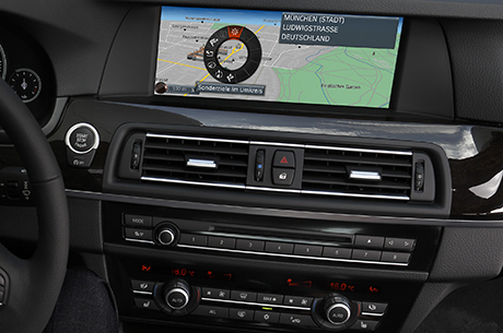La nuova generazione del sistema di navigazione BMW Professional affascina già a prima vista: nei comandi ottimizzati da un design nuovo le immagini visualizzate dal sistema di navigazione BMW Professional si presentano in una qualità ulteriormente migliorata, più brillanti e più nitide: le immagini appaiono in una rappresentazione fortemente ridotta su uno sfondo nero. L’illuminazione crea un’atmosfera particolare che sottolinea lo stile moderno. La nuova configurazione offre una migliore leggibilità di tutti i contenuti, così da rendere anche più semplice il comando delle varie funzioni. La composizione dei singoli menu avviene per la prima volta in spazi virtuali tridimensionali e viene calcolata in tempo reale. Il sistema ad alta velocità funziona con un processore da 1,3 GHz e un chip grafico dedicato che non consente solo lo scrolling e di sfogliare rapidamente il menu ma che elabora delle sofisticate animazioni dai passaggi dinamici che trasformano l’utilizzo in un’esperienza emozionante.