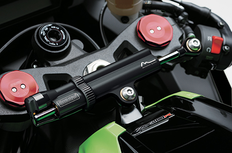 A completamento delle sue prestazioni già al top, la ZX-10R Ninja 2013 sarà equipaggiata di un ammortizzatore elettronico di sterzo – offrendo ancora una volta una tecnologia davanguardia per aiutare i motoclisti ad esplorare il limite estremo di una vera superbike.