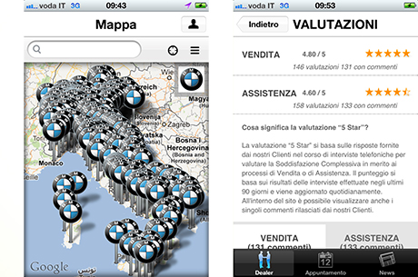Registrazione: creare un account personale in Io e BMW è semplice, occorre solo un indirizzo email, che permette di utilizzare tutte le funzionalità di questa applicazione.Il suo Concessionario o Centro Service preferito: oltre a visualizzare tutte le Concessionarie e i Centri Service ufficiali della Rete BMW in Italia, grazie alla funzione di geolocalizzazione è possibile calcolare il tragitto attraverso le mappe Google Maps dalla propria posizione attuale fino alla Concessionaria o Centro Service di destinazione, individuando tra tutti il proprio preferito. Agli avvii successivi l’App caricherà direttamente la pagina dedicata al Concessionario o Centro Service scelto come preferito, contenente tutte le informazioni associate ad esso. La selezione del preferito è modificabile in qualsiasi momento.