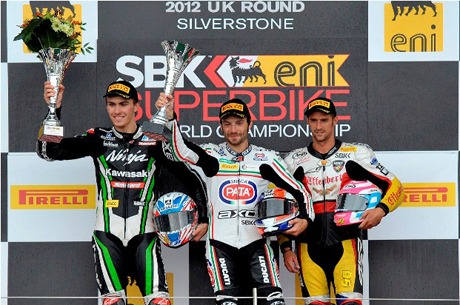 Il via è stato ritardato per l’improvviso peggioramento delle condizioni meteo. Infatti tutti sono partiti con gomme da pioggia (tranne Sykes, con un’intermedia, corso poi ai ripari) e la fuga iniziale è stata di Guintoli e Smrz. Dopo qualche giro di studio, Baz ha dato il massimo, ricucendo lo strappo dai fuggitivi e incalzato a sua volta dalla Ducati Althea Racing di Davide Giugliano, caduto poi senza danni. All’ottavo giro Baz ha superato di slancio Guintoli ma dopo poche curve è scivolato. I contemporanei incidenti di Jonathan Rea, Jakub Smrz e Carlos Checa (Althea Racing Ducati) hanno indotto la Race Direction a fermare la corsa nel corso del decimo giro, con classifica finale stilata al termine dell’ottavo (l’ultimo compiuto da tutti i concorrenti in pista) e con attribuzione di metà punteggio. In quel momento Guintoli era al comando davanti a Baz e lo stesso Smrz.