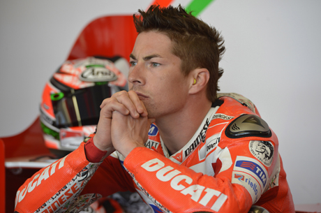 Dopo un inizio di giornata positivo con Valentino Rossi e Nicky Hayden capaci di ridurre ulteriormente il distacco dai primi nel corso del terzo turno di libere, il Ducati Team ha vissuto un turno di qualifiche difficile. A circa dieci minuti dalla fine della sessione Nicky Hayden è caduto alla curva quattordici, mentre stava completando un giro molto veloce con la gomma morbida. Dopo un primo controllo al Centro Medico del circuito, è stato trasferito al Methodist Hospital di Indianapolis dove ulteriori accertamenti hanno evidenziato due piccole fratture non scomposte al secondo e terzo metacarpo della mano destra. La TAC è risultata negativa e il pilota americano dovrebbe essere dimesso in serata o nella mattinata di domani ma in ogni caso non prenderà il via al Gran Premio di Indianapolis.