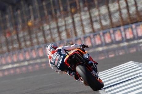 “È stata una sessione complicata perché l’asfalto era molto scivoloso e si sono verificate molte cadute prima in Moto3 e poi in MotoGP. La pista dava la sensazione di poter controllare la derapata, ma improvvisamente molti piloti si sono trovati sbalzati a terra. In queste difficili condizioni è stato cruciale mantenere la concentrazione, cercando il miglior tempo, senza commettere errori. Sono contento del mio risultato. È sempre bello scattare dalla pole position su questo circuito perché il primo settore è molto stretto ed è importante fare una partenza pulita. Oggi abbiamo fatto un ottimo lavoro, ci siamo concentrati sulla prova delle gomme e sulla messa a punto della moto anche in previsione di una corsa lunga e impegnativa. Sento di avere trovato un buon setting per la gara, sono fiducioso, ma ci sono anche altri piloti molto forti. Lorenzo ha un buon passo, Spies è normalmente molto competitivo su questa pista e spero che Casey non abbia riportato complicazioni nella caduta e che domani possa prendere il via. Per quanto riguarda la mia gara, sono determinato a dare il massimo e a lottare per la vittoria”.