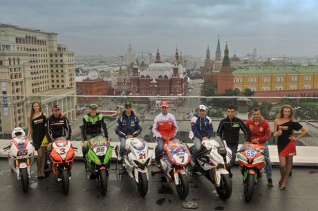Max Biaggi (Aprilia Racing Team), Carlos Checa (Althea Racing Ducati), Tom Sykes (Kawasaki Racing Team), Leon Haslam (BMW Motorrad Motorsport) e John Hopkins (FIXI Crescent Suzuki), insieme al due volte Campione del Mondo Supersport Kenan Sofuoglu e al talentuoso giovane russo Vladimir Leonov (Yakhnich Motorsport Yamaha) sono intervenuti a rappresentare l’arrivo dei due Campionati del Mondo sul suolo russo. I piloti hanno risposto alle domande dei giornalisti prima di posare per la foto di rito sulla suggestiva terrazza dell’hotel che ha per sfondo gli inconfondibili monumenti simbolo della città di Mosca