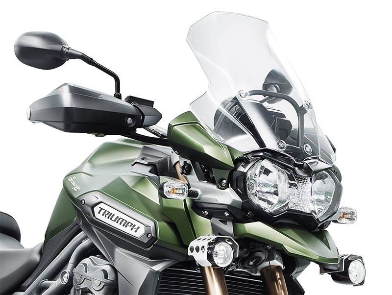 Una serie di accessori standard sottolinea il carattere avventuroso dell’Explorer XC per offrire comfort e sicurezza, qualunque sia il vostro viaggio. I paramani Adventure tengono a riparo mani e comandi, mentre i performanti fari antinebbia da 55w aumentano la visibilità anche quando le uscite si protraggono fino a tardi. Le robuste barre paramotore in acciaio da 22mm e lo spesso puntale in alluminio offrono massima protezione anche sui percorsi più impegnativi. Una ricca gamma di altri 54 accessori originali Triumph è disponibile per personalizzare ulteriormente la propria XC.