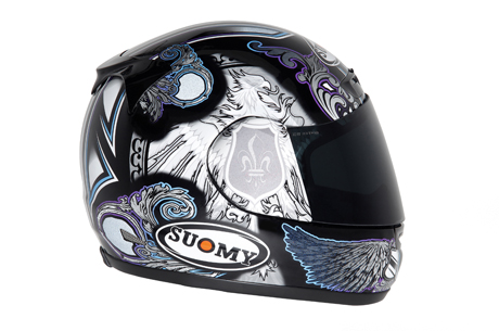 Dal 15 di settembre è disponibile il nuovo suomy Apex Angel in due diverse colorazioni, su base bianca o nera. Si tratta di un ulteriore esercizio di grafica innovativa: tono su tono i vari colori si fondono con armonia fino a dare spazio al virtuosismo assoluto, creando delle sfumature con un glitter spalmato a specchio che ha la caratteristica di essere particolarmente brillante con la luce del sole. Apex è sicuramente un best seller nella gamma Suomy e viene proposto al pubblico ad €364,00 iva inclusa.