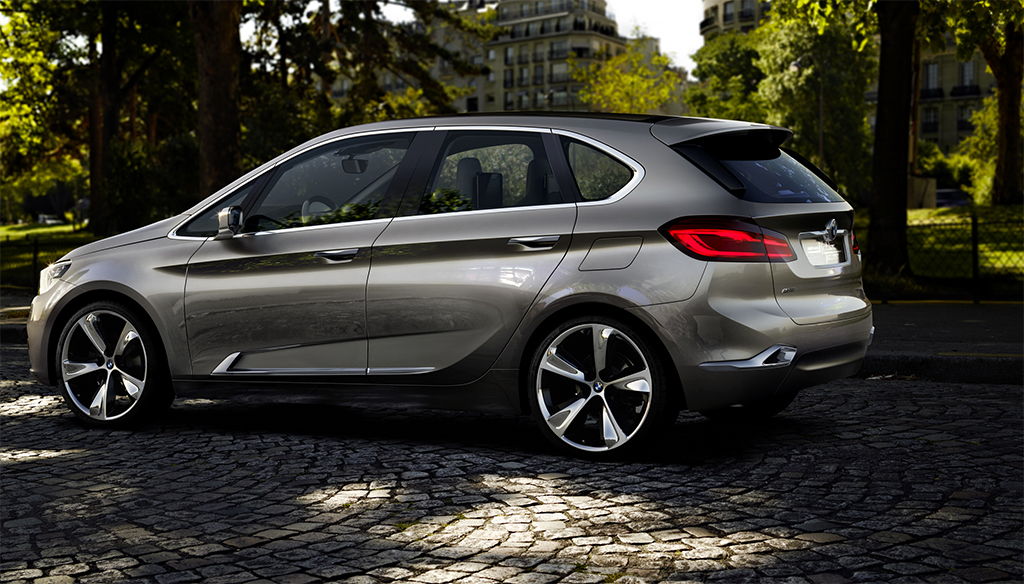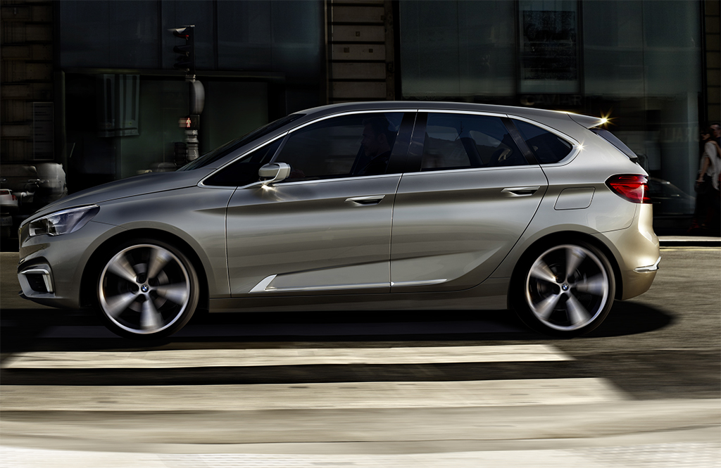 La nuova BMW Concept Active Tourer unisce dimensioni compatte e un attraente design sportivo alla qualità che è tipica di BMW. Con 4 350 mm di lunghezza esterna, 1 834 mm di larghezza e 1 560 mm di altezza complessiva, la BMW Concept Active Tourer si rivolge a clienti che apprezzano un alto livello di comfort, una posizione a sedere elevata e una spaziosità generosa nel segmento delle compatte premium. Altrettanto interessante è la BMW Concept Active Tourer per le famiglie con accentuate preferenze riguardo a lifestyle, sportività, funzionalità e versatilità.