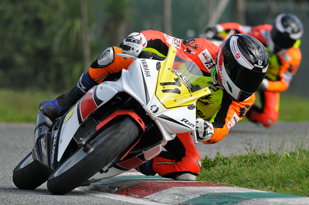 Un paddock parzialmente allagato per le abbondanti piogge dei giorni precedenti, ma fortunatamente scaldato da un sole ancora “estivo”, ha fatto da cornice al round conclusivo della Yamaha R125 Cup 2012, andato in scena ieri sul Circuito Internazionale del Sagittario di Latina. Il neo-campione Damiani Mencarelli si è confermato ancora una volta il protagonista indiscusso del monomarca della Casa giapponese conquistando anche sul tracciato laziale due manche su due, dimostrando cosi di essere il più forte del 2012. Come ormai da consuetudine il pilota della provincia romana rimane “prudente” in qualifica, per poi scatenarsi in gara con una perentoria doppietta che relega il primo degli inseguitori, l’amico Valentino Volpini, a ben 72 punti di distacco nella classifica finale del campionato, a testimonianza di una stagione per lui davvero da incorniciare. Proprio Volpini però a Latina è l’unico a riuscire a sorpassare ben due volte in Gara 2 Mencarelli, anche se quest’ultimo impiega poche curve a riprendersi la leadership, incluso un sorpasso capolavoro all’ultima curva. In seconda posizione di giornata termina un ritrovato Magliocchetti seguito appunto da Volpini, scivolato e poi ripartito in Gara 1. Primo al traguardo tra i Rookie il “solito” Gini, sicuramente l’esordiente più promettente e consistente, considerato che insieme a Mencarelli è l’unico ad aver sempre tagliato il traguardo nelle dodici manche disputate quest’anno.