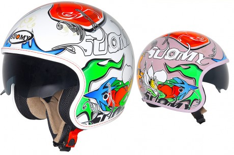 In un momento economico grigio, carico di tensioni, Suomy reagisce con il 70’Drake. Una esplosione di colori combinati su una tavolozza infinita ripropone temi atavici. Si tratta di un casco fibra qualità Suomy, dedicato ad un pubblico che ha voglia di reagire alla quotidianità, che alimenta ancora i propri sogni e che vuole riaffermare quella voglia di ridere propria di chi ama la vita. Inutile descrivere un prodotto che esprime una filosofia di vita. Basta guardarlo e lasciarsi trasportare dalle emozioni.