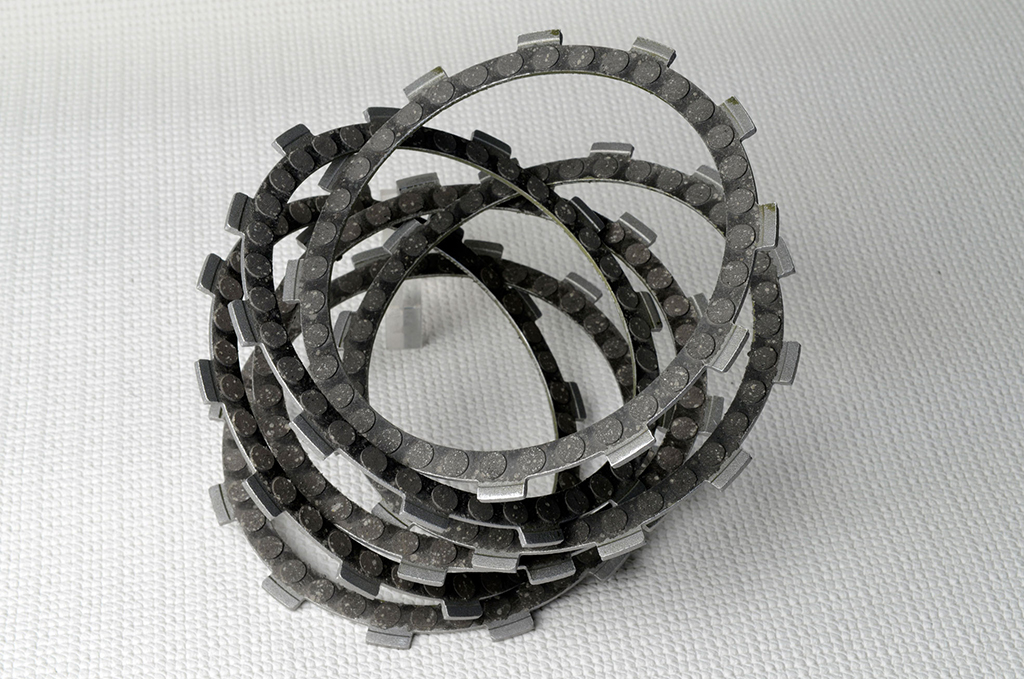 L’anima in lega di alluminio pressofusa è guarnita con materiale d’attrito nuovo nella mescola e nella forma dei tasselli, studiati per un miglior deflusso dell’olio in modo da favorire l’efficacia della frizione a cominciare da un pronto innesto.
