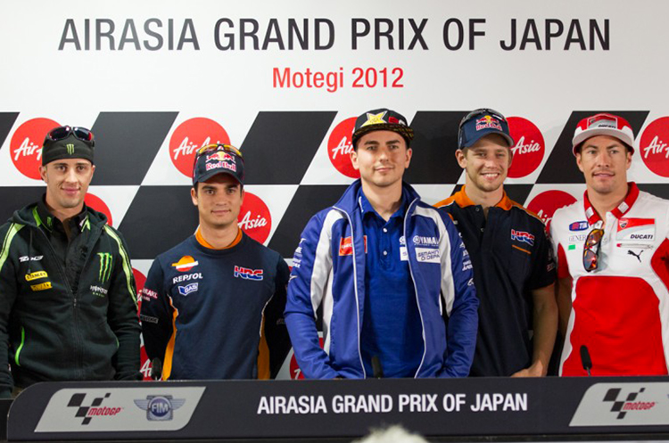 Il leader del mondiale Jorge Lorenzo proprio su Stoner ha detto: “È una cosa che non puoi controllare. Se Casey è veloce può vincere e può togliere punti sia a Dani che a me. L’unica cosa che posso controllare sono le mie prestazioni in queste gare”.