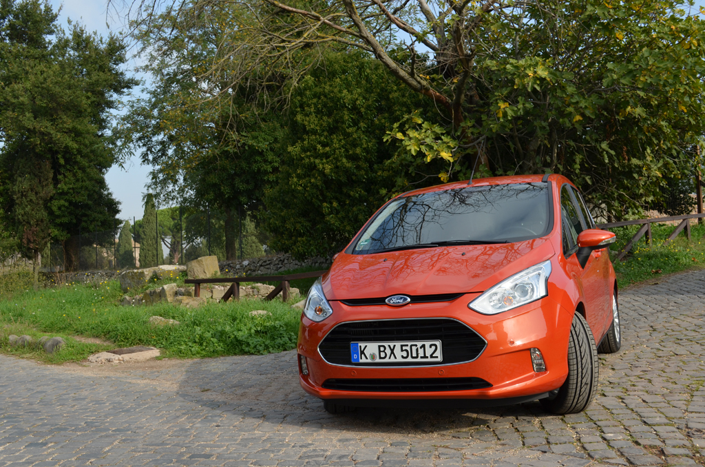 Sicura in appoggio, complice anche la generosa gommatura presente sull’esemplare in prova, la nuova Ford B-Max mostra un lieve sottosterzo, fenomeno tipico delle vetture a trazione anteriore, fenomeno che si riduce diminuendo la pressione sull’acceleratore;lo sterzo è preciso e leggero nelle manovre da fermo, la coppia del motore permette sempre un’andatura brillante, quasi sempre in regime di coppia.