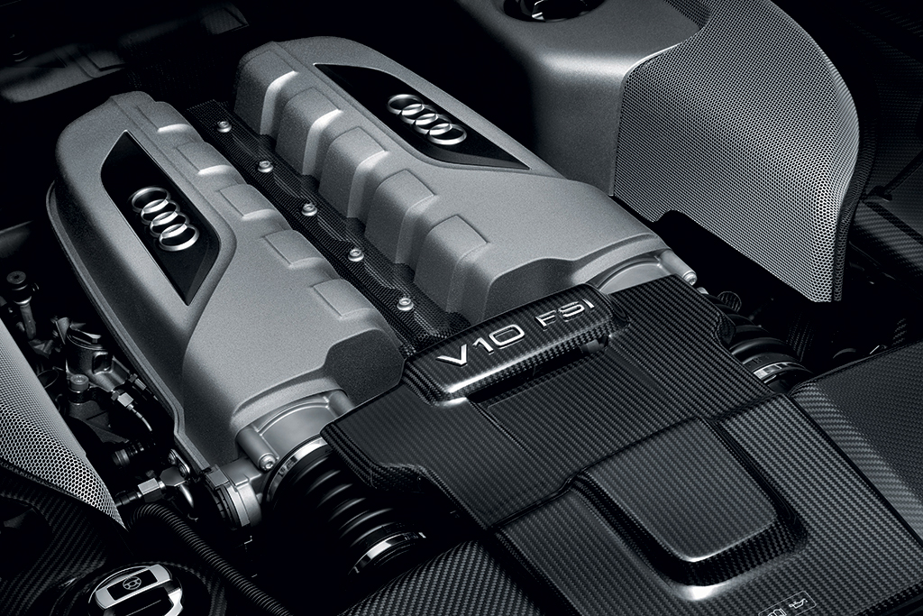 L’otto cilindri, propulsore della Audi R8 V8, eroga 430 CV (316 kW) e sviluppa 430 Nm di coppia, che rimane disponibile tra 4.500 e 6.000 giri. In combinazione con il cambio S tronic a sette rapporti accelera la R8 Coupé da 0 a 100 km/h in 4,3 secondi e la spinge fino alla velocità massima di 300 km/h. La Audi R8 V10 con S tronic liquida l’accelerazione standard in 3,6 secondi e raggiunge i 314 km/h di velocità. La versione a dieci cilindri ha una potenza di 525 CV (386 kW) e a 6.500 giri eroga una coppia di 530 Nm.