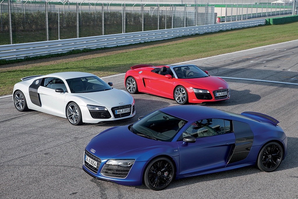 La famiglia R8 prevede due varianti di carrozzeria (Coupé e Spyder) e tre motorizzazioni. Nelle versioni con il nuovo S tronic a sette rapporti lo sprint da 0 a 100 km/h è migliorato di 0,3 secondi, mentre i consumi sono diminuiti di 0,9 litri ogni 100 km (22 grammi di CO2 al km).