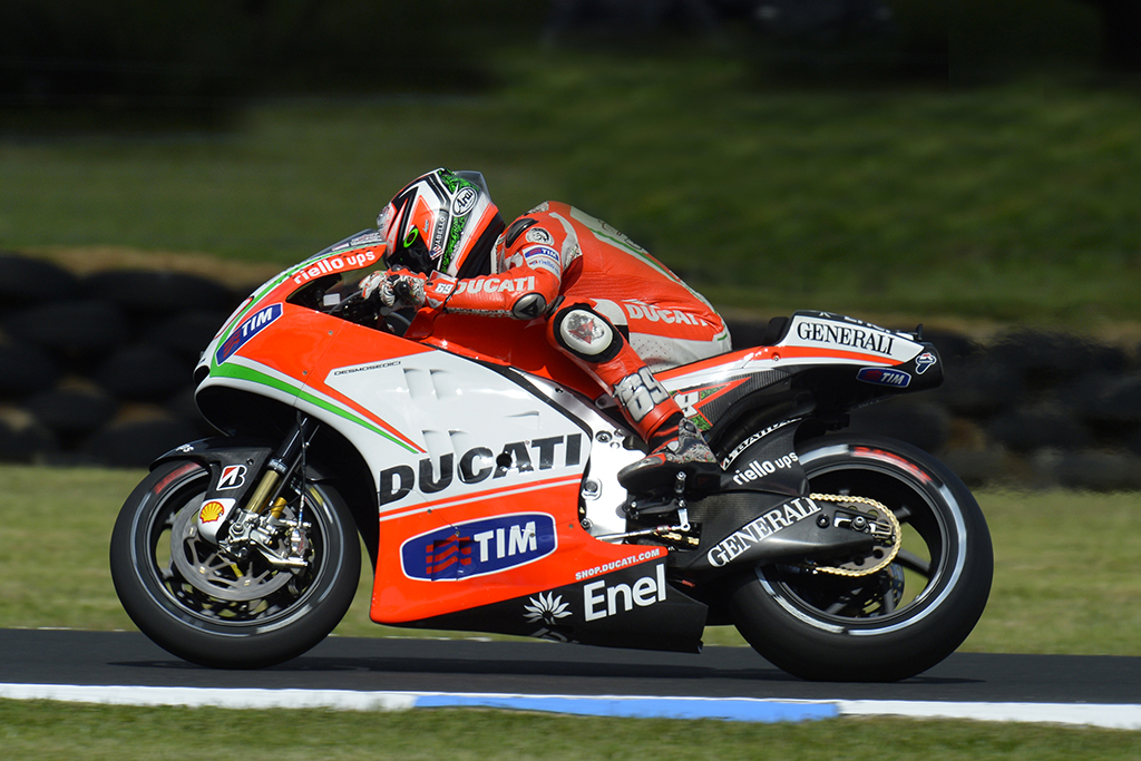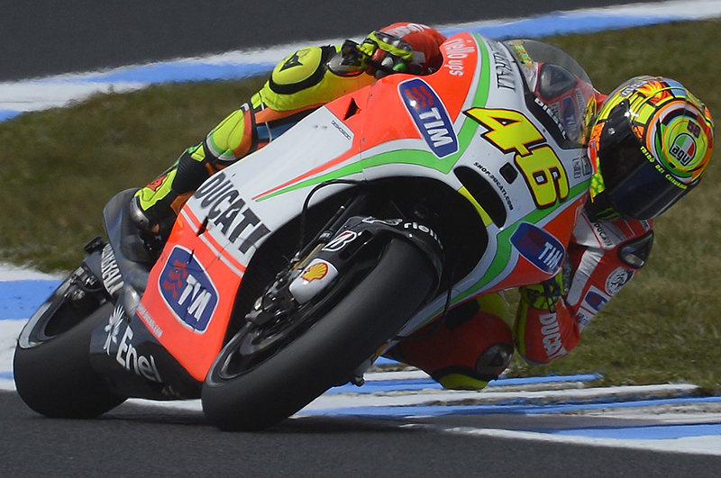 Valentino Rossi ed il suo compagno di squadra Nicky Hayden, si cimentano nelle prime libere Australiane.Le tipiche condizioni meteo della primavera di Phillip Island hanno fatto sì che i piloti della MotoGP, nella prima giornata di prove del GP australiano, dovessero vedersela con un vento freddo e, a tratti, qualche goccia di pioggia. Le due sessioni di prove libere si sono comunque svolte in condizioni accettabili e sia Valentino Rossi sia Nicky Hayden hanno lavorato sul set up per riuscire ad essere competitivi nelle curve veloci senza perdere troppa trazione. Il pilota italiano ritiene di avere intrapreso la strada giusta in questa direzione, ma sia lui che l’americano devono diminuire un fastidioso “chattering”.Valentino Rossi (Ducati Team)