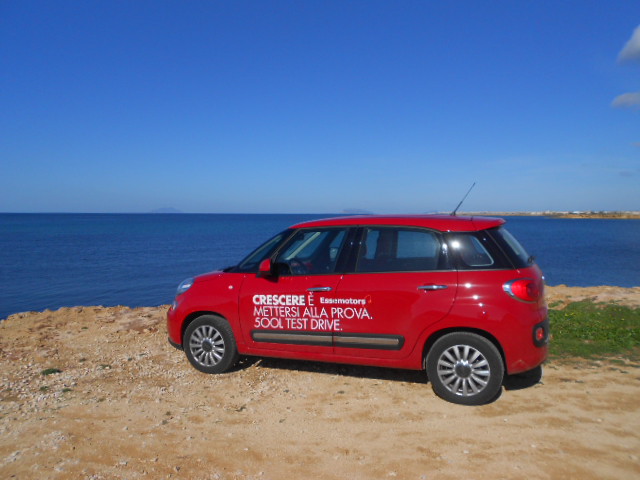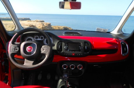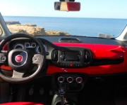 La plancia della Fiat 500L è costruita con buoni materiali e ha una impostazione semplice. Al centro c’è il monitor touch screen che ha la funzione di navigatore e radio. Il volante è un tre razze sportivo con un’ottima impugnatura ed è dotato dei tasti multiuso per l’impianto di intrattenimento. Su strada il 1.3 multijet da 85 cv si conferma un buon motore, ma non è sicuramente un fulmine, in futuro arriverà anche un 1.6 multijet e un 1.4 turbo benzina, questi propulsori saranno più adatti per chi vorrà più prestazioni. L’ho guidata in città e si è rivelata particolarmente agile nel traffico cittadino e facile da parcheggiare con l’aiuto del tasto city. Uscendo dal centro abitato e guidandola su un bel tratto misto come il lungomare di Petrosino, ho potuto provare la buona agilità e prontezza dello sterzo, come del cambio manuale a cinque marce, con una leva imponente e ben manovrabile.