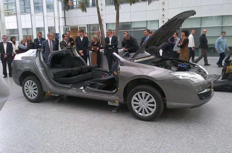 Dopo sette settimane di lavoro, le équipe hanno raccolto la sfida e ieri hanno consegnato questo primo modello di Laguna in “kit”. L’auto è stata alleggerita di componenti superflui quali il motore, il serbatoio del carburante e gli elementi di sicurezza come gli airbag, conservando le funzionalità del volante e del piantone dello sterzo, per poter maneggiare facilmente il veicolo.