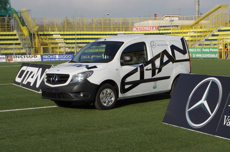 Prima dell’inizio delle partite della Serie B, e durante il riscaldamento delle squadre, alcuni Citan saranno protagonisti negli stadi della Serie B, al centro dei campi da gioco o a bordo campo. Il city van Mercedes diventa così il dodicesimo giocatore a fianco degli undici calciatori di ognuna delle ventidue squadre che si contendono il titolo del campionato cadetto e la promozione in Serie A. Durante i “Citan day” anche i tunnel d’ingresso in campo si animano ed un’illusione ottica farà uscire i calciatori direttamente dal vano di carico dello spazioso e versatile Citan. Un’esperienza che si completa con la trasmissione di alcuni video sugli schermi all’interno degli stadi per regalare una giornata di Campionato diversa dal solito in compagnia del nuovo city van Mercedes.