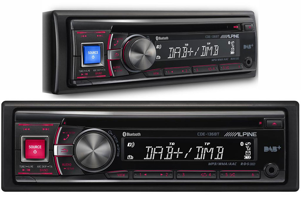 Alpine CDE-136BT è un Sinto CD dotato di sintonizzatore digitale DAB integrato, per ascoltare la radio con un’eccellente qualità audio.