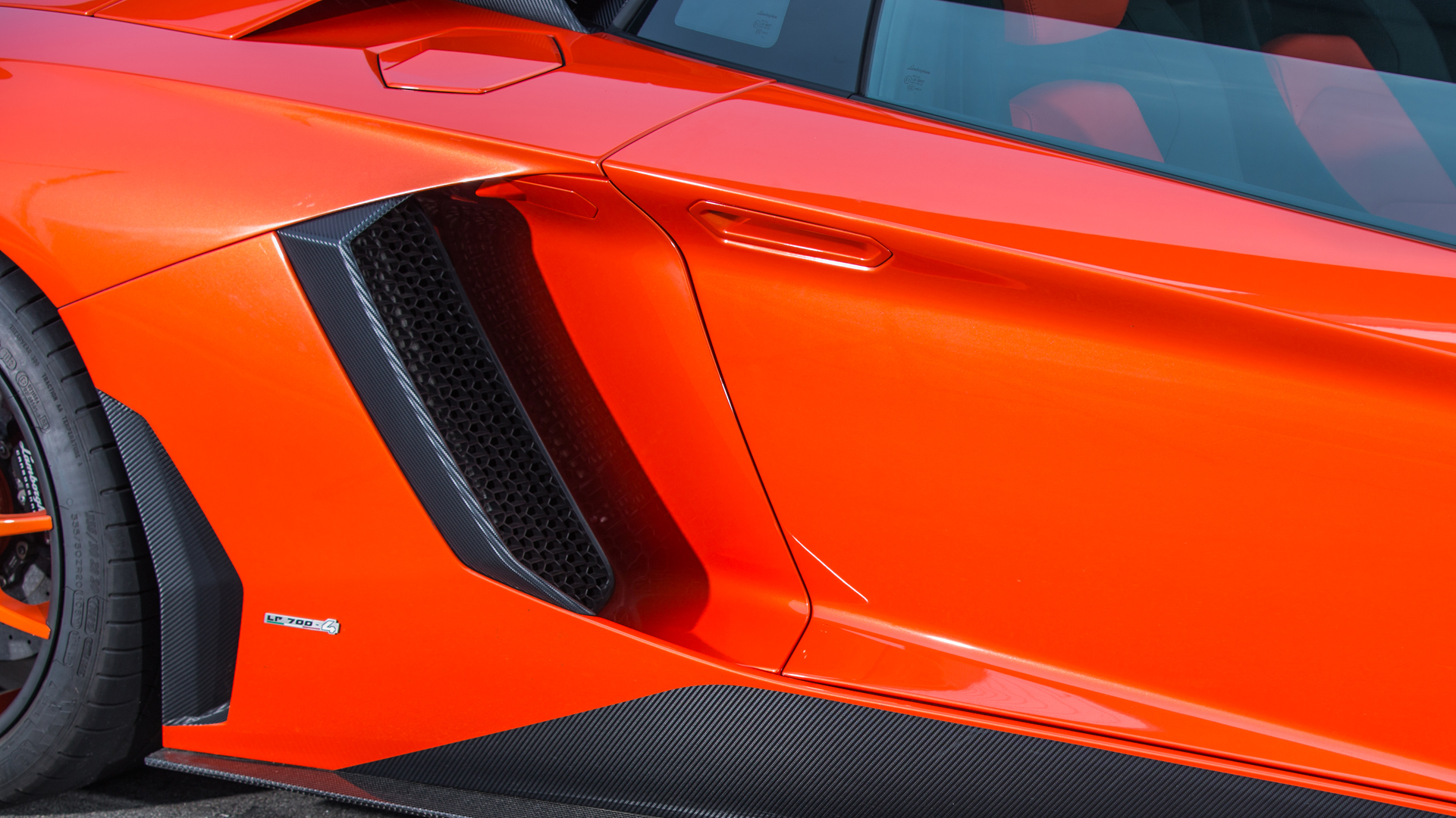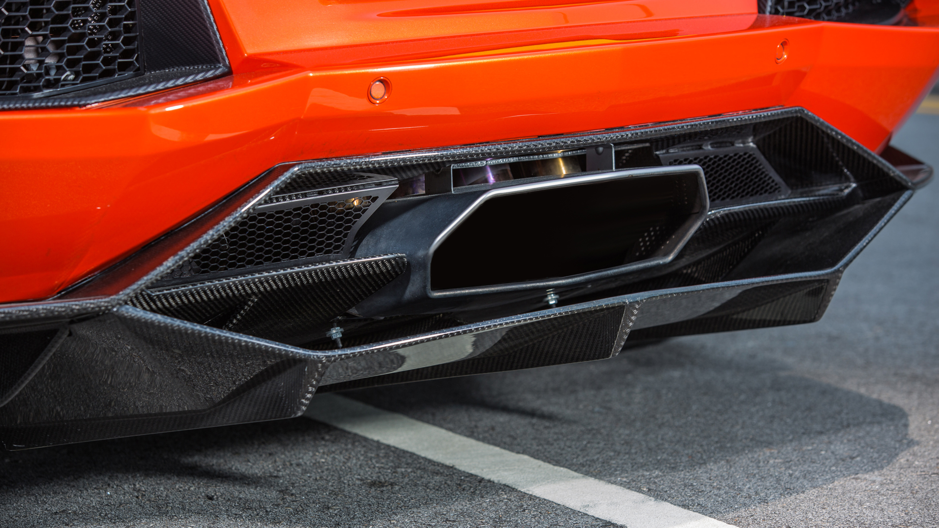 Il maggior problema che una vettura stradale non dotata di vistose appendici aerodinamiche incontra nello scaricare a terra una potenza così elevata, nel caso della Lamborghini Aventador parliamo di 700cv, risiede nel dover avere sempre un sufficiente contatto con il suolo: il carico aerodinamico su una vettura così prestazionale è fondamentale.