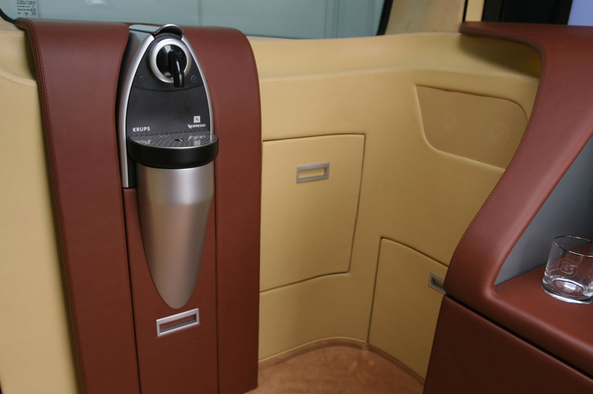 Un completo BRABUS sistema multimediale con un lettore DVD e monitor a schermo piatto fa parte della dotazione di bordo, mentre un PC con accesso a Internet, fax e telefono cellulari consente di svolgere attività di ufficio in movimento.