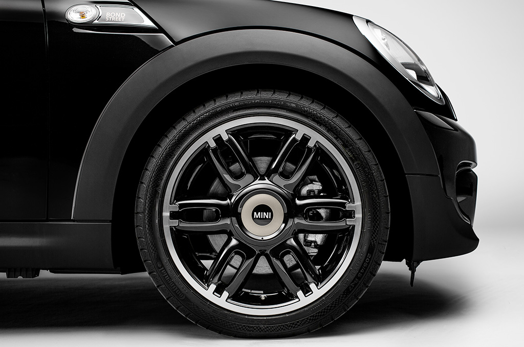 Le numerose dotazioni e gli elementi stilistici realizzati con la massima eleganza donano al design e agli interni della MINI Clubman Bond Street un look raffinato e inconfondibile che si distingue dai prodotti di massa presenti sul mercato automobilistico. La scocca dalla vernice esclusiva è stata completata con alcuni dettagli che sottolineano ulteriormente il carattere unicodella MINI Clubman Bond Street. I cerchi in lega da 17 pollici Twin Spoke Black sono stati impreziositi con un esclusivo anello decorativo laccato Cool Champagne. Come le cornici degliindicatori laterali di direzione, così anche i battitacco sono abbelliti dalla scritta Bond Street.