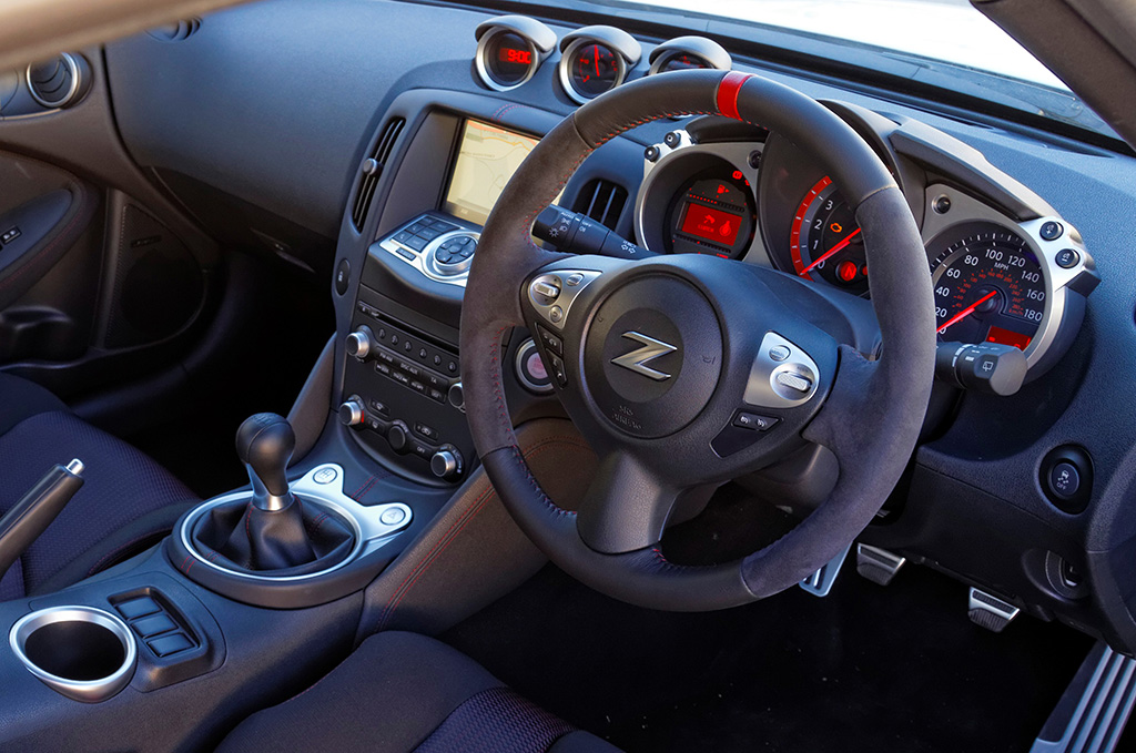 All’interno, l’abitacolo della 370Z, costruito intorno al pilota, enfatizza le credenziali sportive con il volante rifinito in alcantara che segna con una tacca rossa il punto morto superiore, come sulle auto da corsa e come su Juke Nismo. I sedili avvolgenti sono a regolazione elettrica e portano il marchio Nismo cucito nei rivestimenti di pregio.