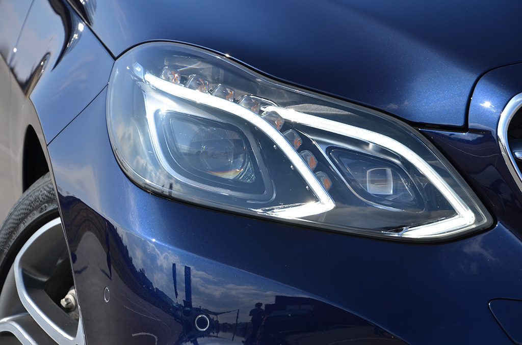 E’ vestita di un elegante blu ministeriale, con interni in pelle bianca ed inserti scuri, la nuova Mercedes Classe E 400, stupisce per il sound dimesso ma che ad ogni pestata di gas evoca grinta e per i suoi molteplici dispositivi di sicurezza attiva che quasi ci invitano ad una guida più rilassata.