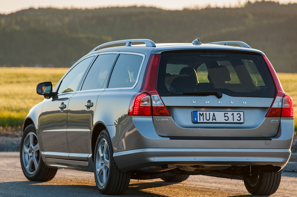 La sezione posteriore della nuova Volvo V70 presenta un nuovo paraurti e nuovi tubi di scarico, dettagli cromati aggiuntivi e gruppi ottici ridisegnati. L’auto è anche disponibile con cerchi ruota di diametro fino a 19″.