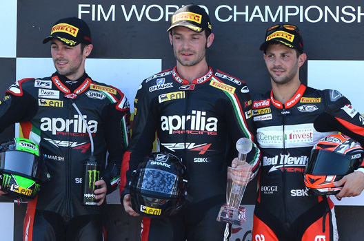 Il francese Sylvain Guintoli (Aprilia Racing Team) ha ottenuto così la sua quarta vittoria in carriera all’esordio sulla RSV4, conducendo la seconda parte di gara, dopo un sorpasso sul compagno di squadra Eugene Laverty al 15esimo giro.
