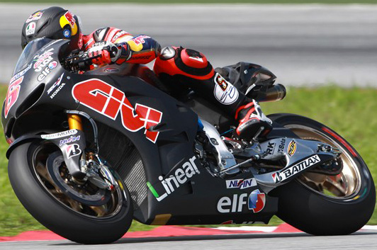 Il primo giorno di lavoro dei tre in programma per la classe regina è stato segnato da un alto livello di umidità e da una pioggia tropicale tipica della zona con Bradl che continua la sua progressione in sella alla Honda anche sul bagnato totalizzando 38 giri con il miglior tempo di 2’01.959.