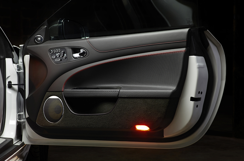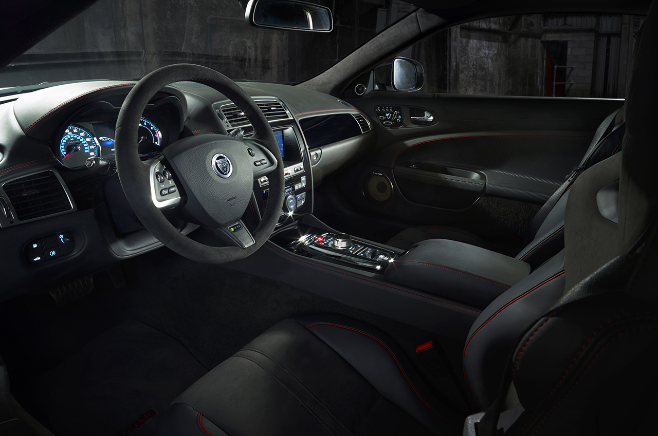 La Jaguar XKR-S GT è disponibile nel colore Polaris White con grafiche esclusive e la scritta Jaguar R-S GT sul cofano motore. Gli interni neri – con accenti rossi – presentano sedili “Performance” elettricamente regolabili in 16 posizioni, rifiniti in pelle soft-grain Warm Charcoal e pelle scamosciata, con i loghi Jaguar e R-S GT integrati nello schienale. Il cielo e il volante di pelle scamosciata Jet, le leve di selezione delle marce al volante in alluminio, sono di serie. I caratteri sulle soglie d’ingresso e la consolle evidenziano l’esclusività della XKR-S GT.