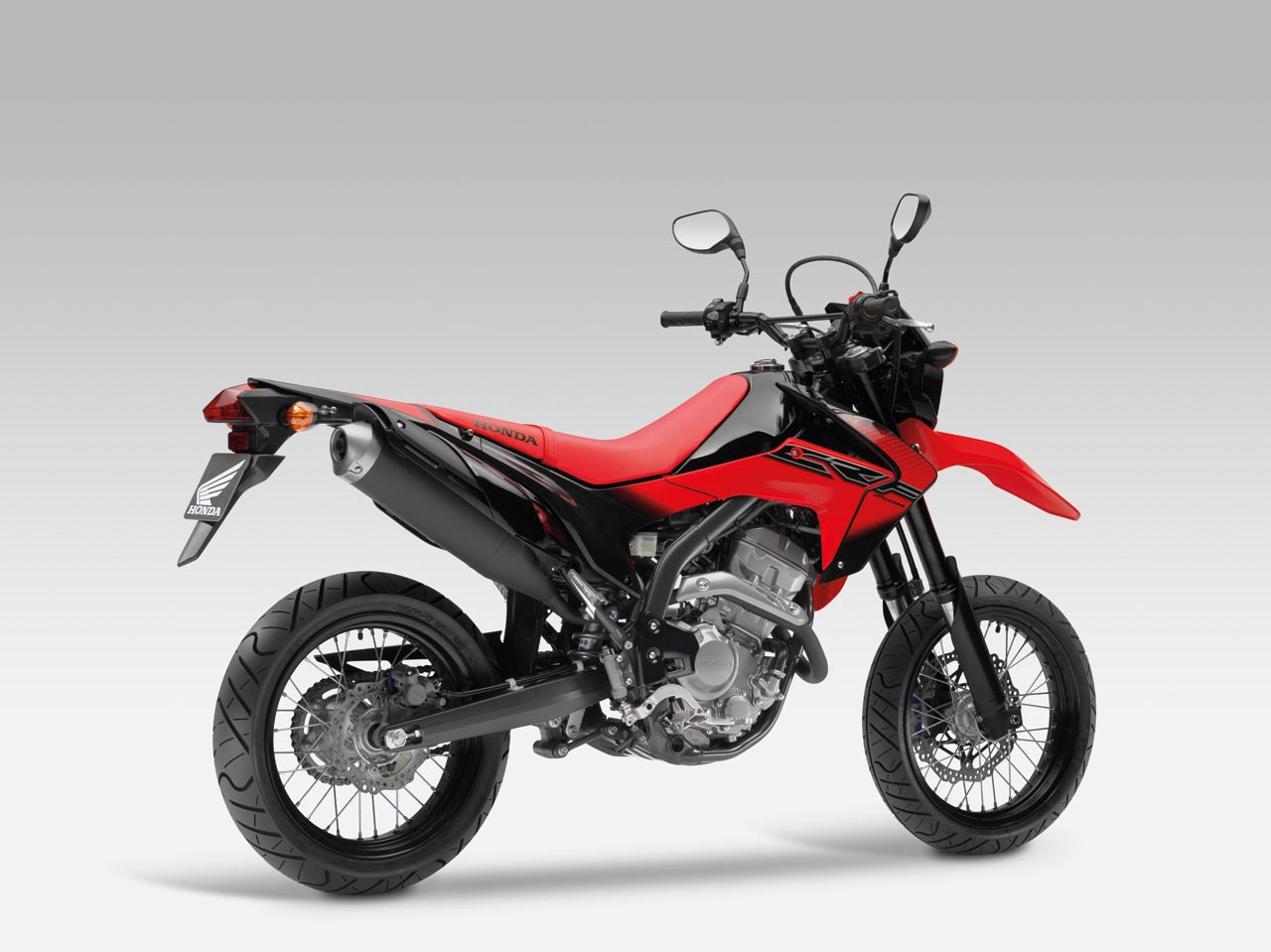 Derivata dalla enduro Honda CRF250L, la supermoto Honda CRF250M è più bassa di 20 mm, per via delle ruote da 17 pollici con pneumatici ribassati per le quali è stato impostato un assetto stradale con sospensioni dotate di taratura più rigida. La frenata è più potente, grazie al disco di grandi dimensioni, necessario a rendere più efficace l’azione degli pneumatici sportivi di larga sezione. Il generoso motore monocilindrico raffreddato a liquido assicura una risposta pronta e brillante, grazie anche alla rapportatura della trasmissione finale rivista, offrendo al tempo stesso un’incredibile efficienza nei consumi e tutta la coppia e potenza necessarie ad affrontare qualsiasi percorso.