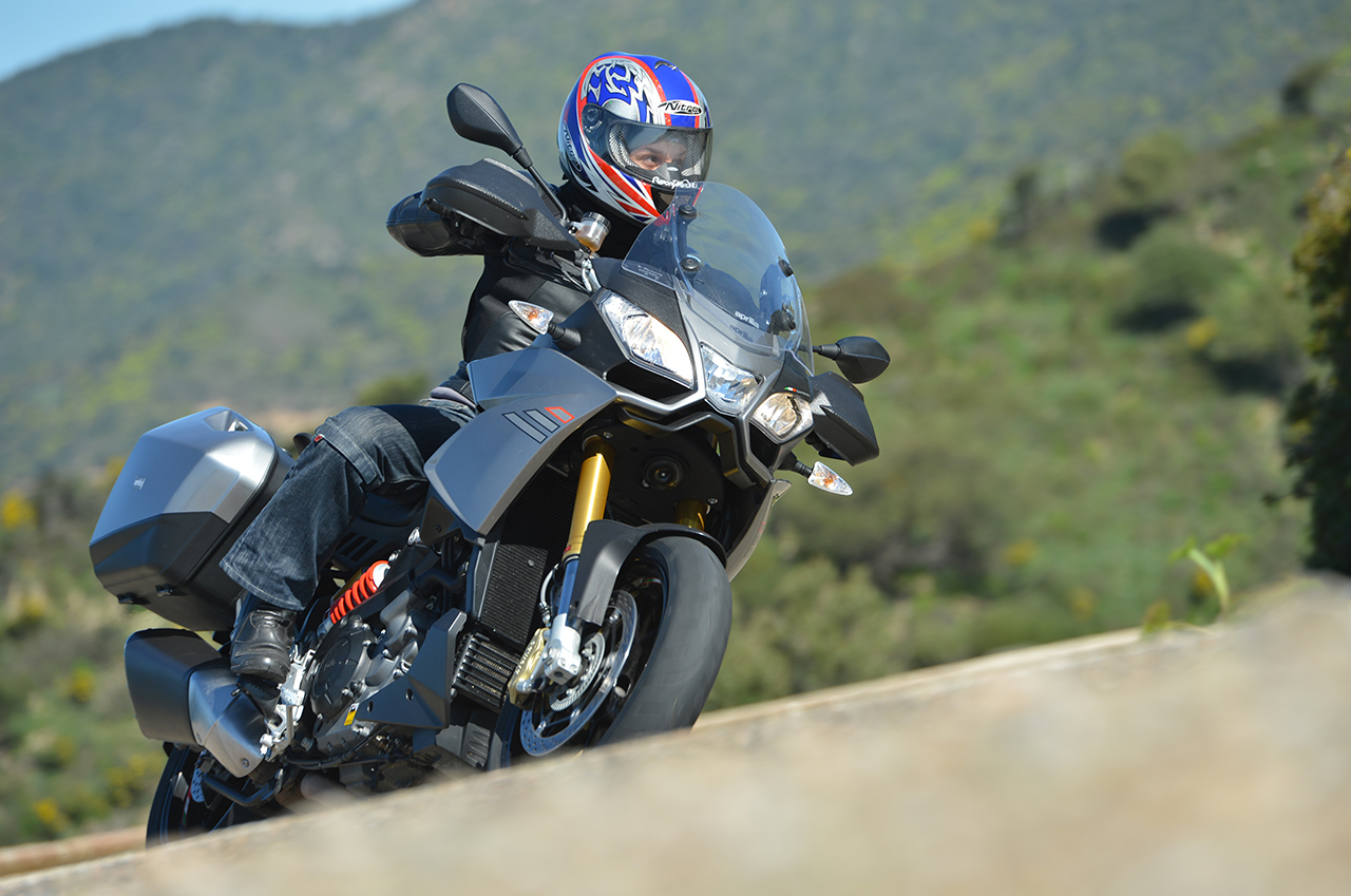 Potremmo annoiarvi con tutti i soliti “discorsi” del tipo: motore bicilindrico a V di 90° che eroga 125cv, tecnologia Ride by Wire con tripla mappatura (Sport, Touring e Rain), ADD (Aprilia Dynamic Damping), ABS disinseribile, ATC (Aprilia Traction Control) disinseribile e regolabile su 3 livelli di intervento e tante altre diavolerie elettroniche tipo il Cruise Control (ACC) ma ….. il nostro miglior racconto si cela nella prova su strada, un test che ci ha svelato come tante sigle e tanta tecnologia nella prova dei fatti non annoiano anzi…